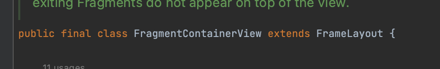 기본적으로 FragmentContainerView 는 FrameLayout 을 상속하고 있습니다.